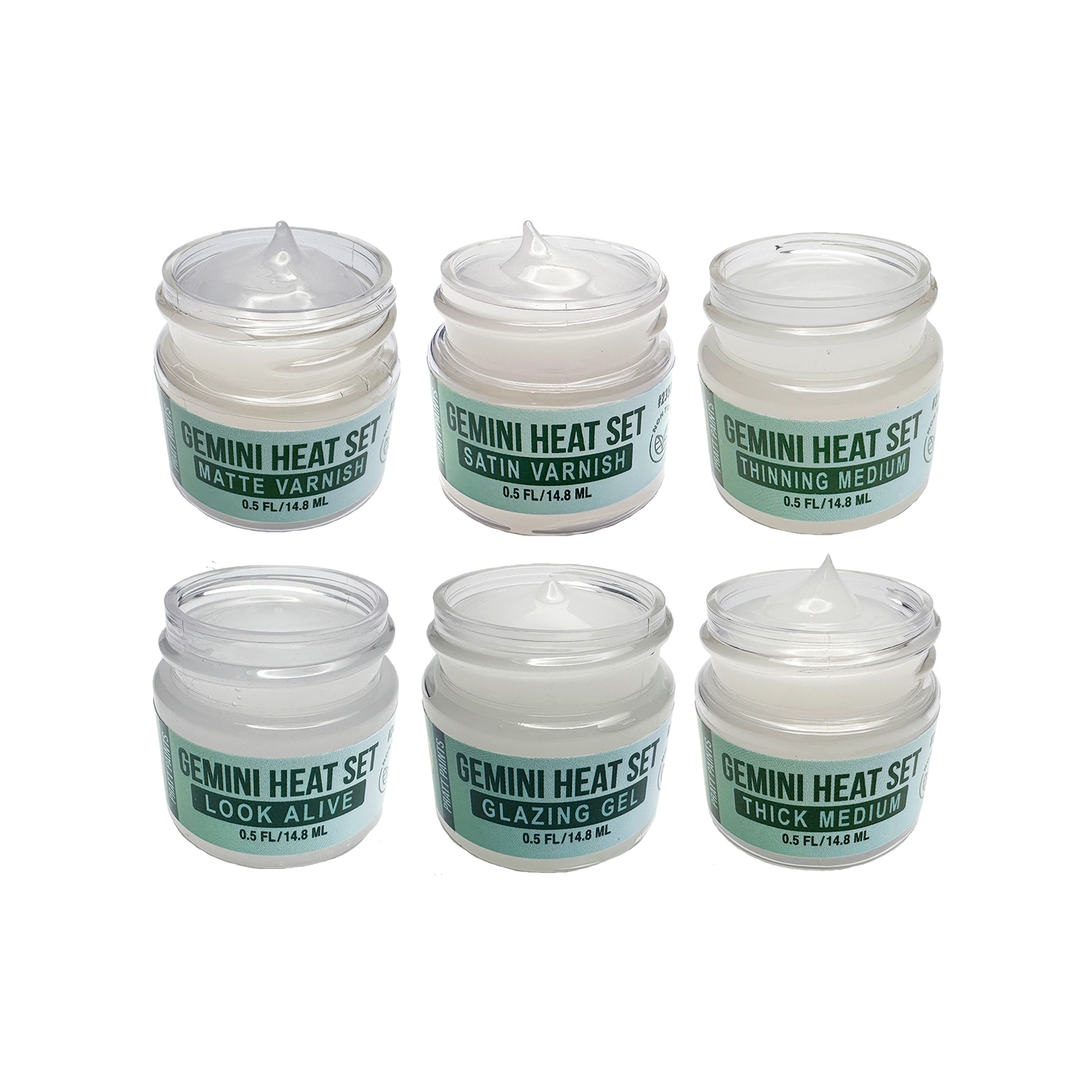They are all designed to use straight out of the jar without thinning. However, you can thin them with Gemini® Heat Set thinner to achieve other effects.